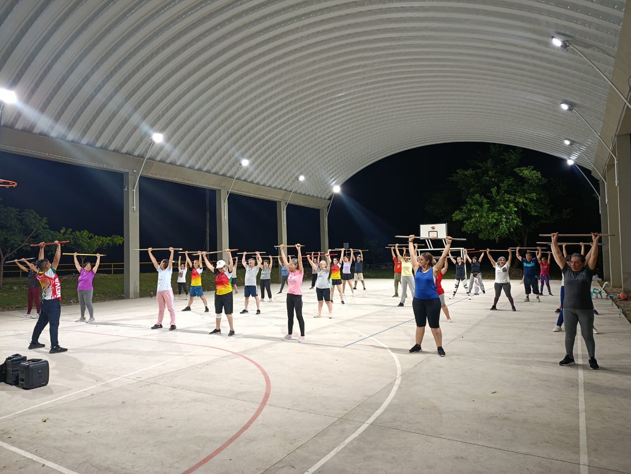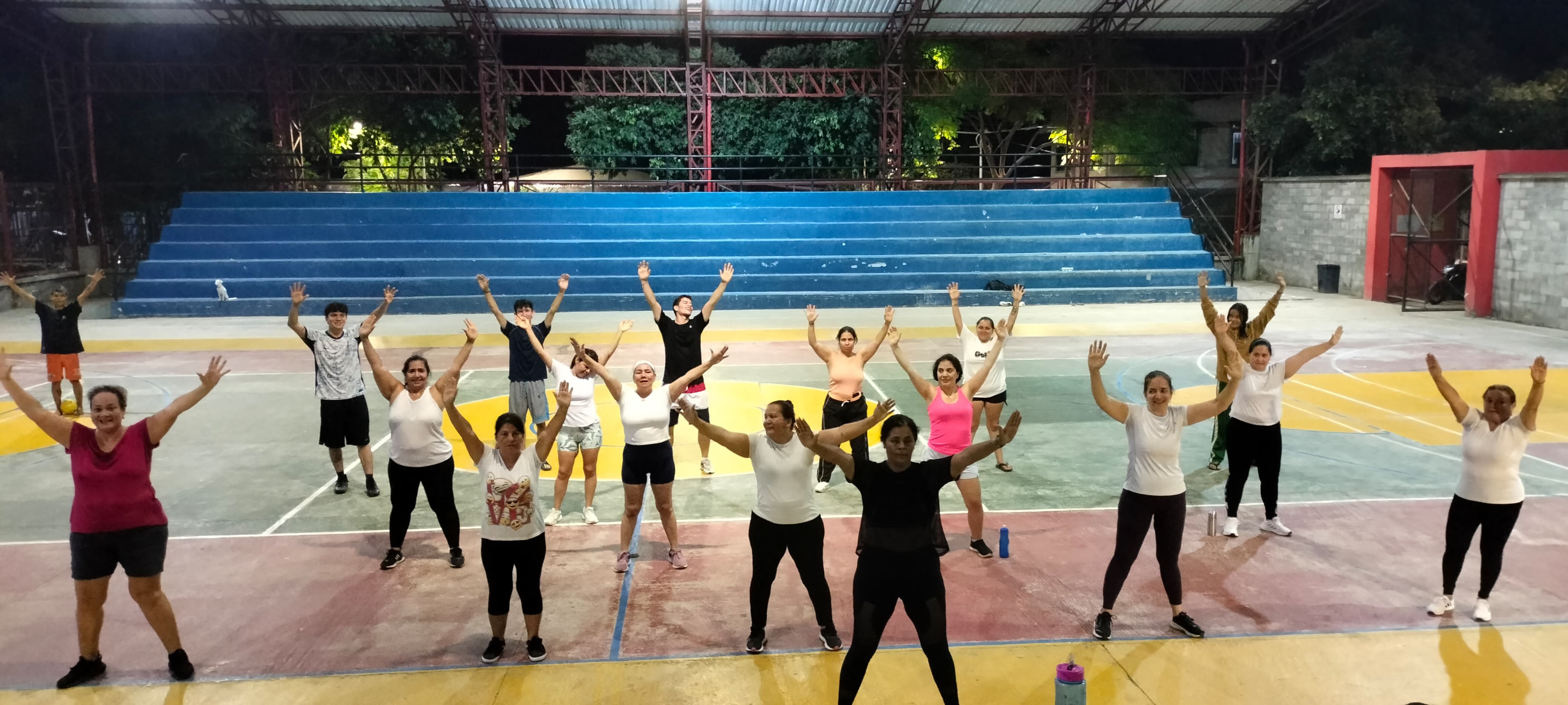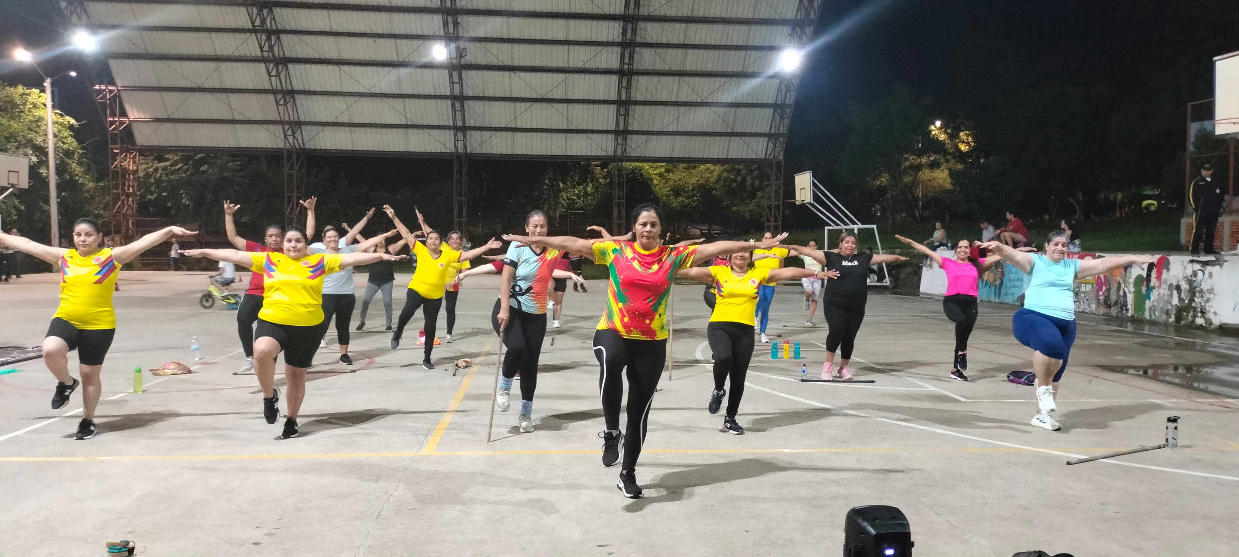 Sesiones de actividad física musicalizada de forma presencial una (1) veces a la semana, de una hora (50 minutos) de intensidad aeróbica moderada.