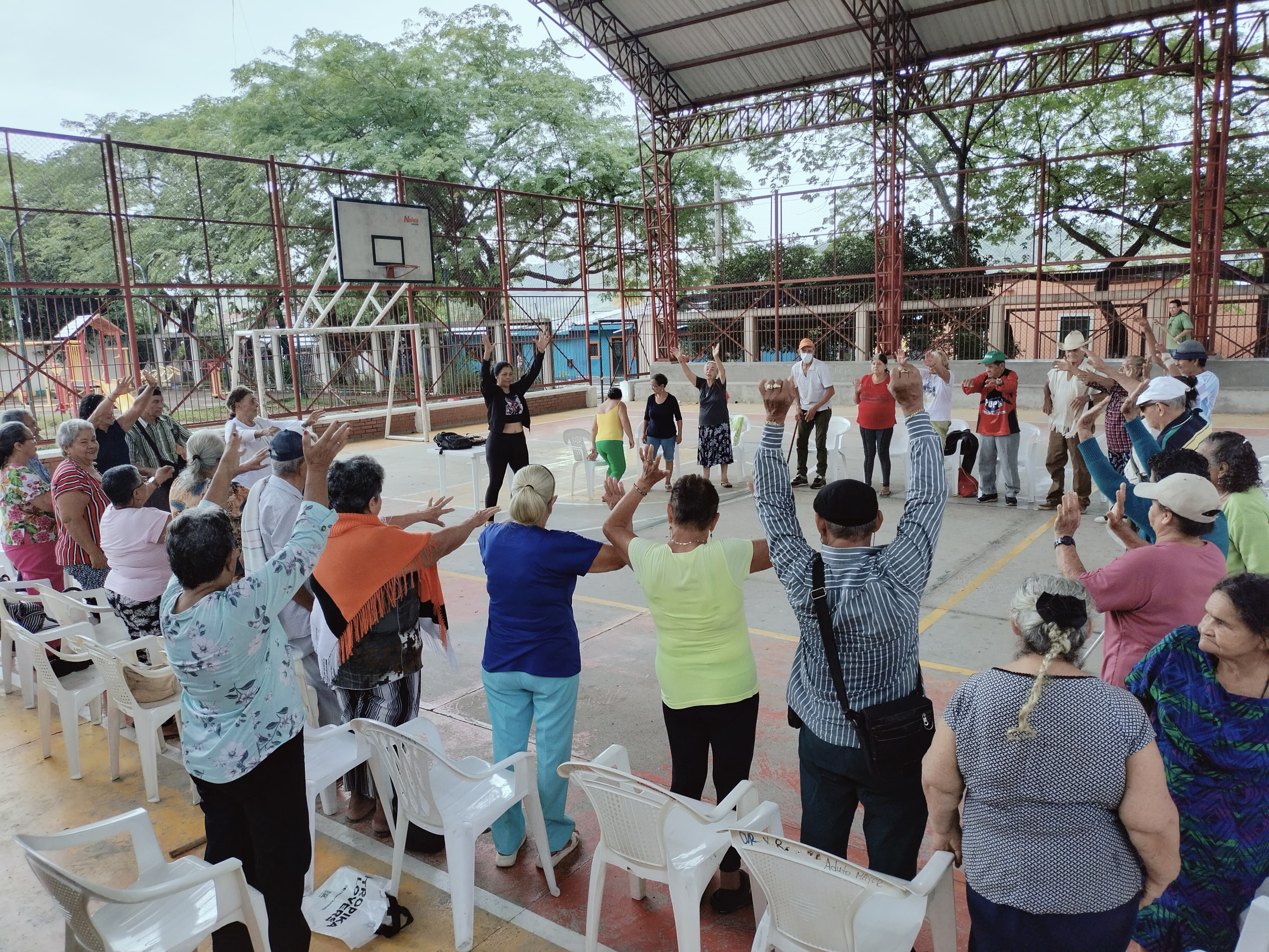 Estas sesiones son estructuradas con rutinas básicas de movimiento y de actividad física aeróbica moderada, priorizando la edad, condición y estado de salud de los adultos mayores.
