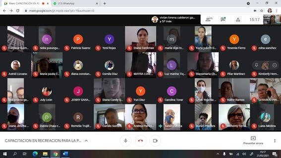 El el viernes 21 de mayo, en horas de la mañana se realizó la capacitación en RECREACIÓN PARA LA PRIMERA INFANCIA, dirigida por la Magíster en Educación Nelsy Yanil Pérez Cuervo, la capacitación se realizó por medio virtual a través de plataforma meet.