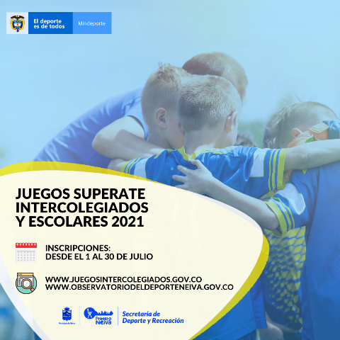La Secretaría de Deporte y Recreación invita a todas las instituciones educativas públicas y privadas a que se inscriban en LOS JUEGOS SUPÉRATE INTERCOLEGIADOS Y ESCOLARES 2021.